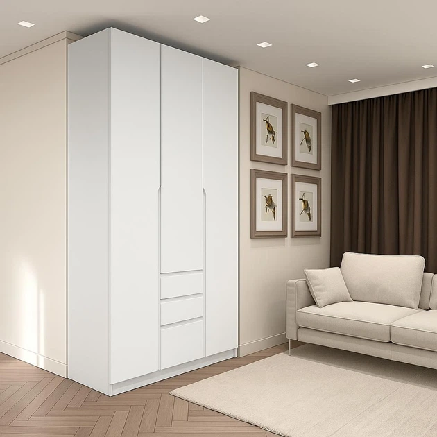 Шафа розпашна ШР7 SENAM 2500х1400х600 мм корпус ДСП Білий фасад МДФ фарба Білий (RAL9003) фрезеровані ручки V і J (ШР7.25.60
