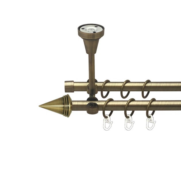 Карниз Orvit Конус металевий дворядний відкритий до стелі гладка труба кільце металеве Антик 16\16 мм 160 см (00-00016907)