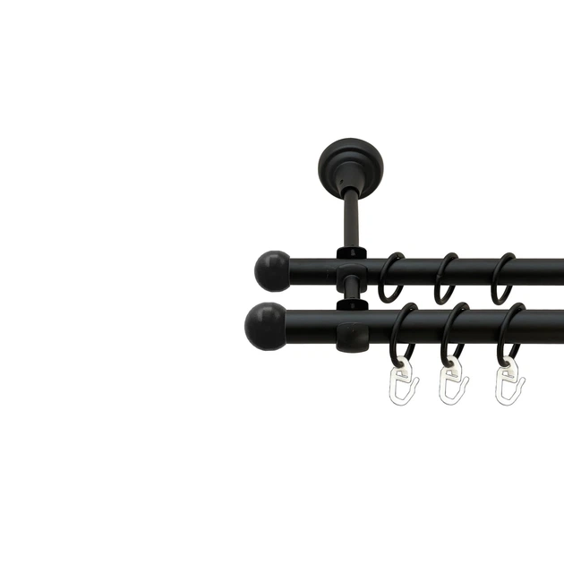 Карниз Orvit Куля Болонь металевий дворядний відкритий гладка труба кільце металеве Чорний Оксамит 19\16 мм 200 см (00-00020