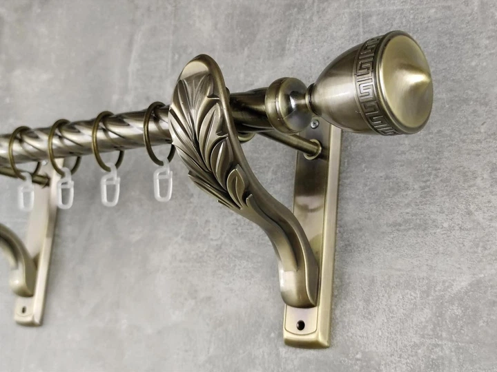 Карниз MStyle металевий для штор однорядний Афіна 25мм ретро кручений 160см Антик (A010403)