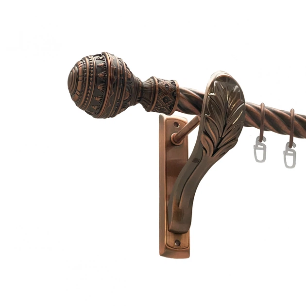 Карниз Orvit Арабеска металевий однорядний ретро скручена труба кільце металеве Мідь 25 мм 240 см (00-00016340)