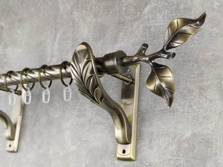 Карниз MStyle металевий для штор однорядний Листок Троянди 25мм ретро кручений 160см Антик (A011060)
