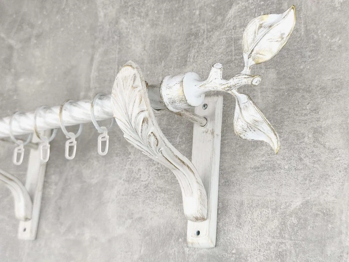 Карниз MStyle металевий для штор однорядний Листок Троянди 25мм ретро кручений 160см Біле золото (A012565)