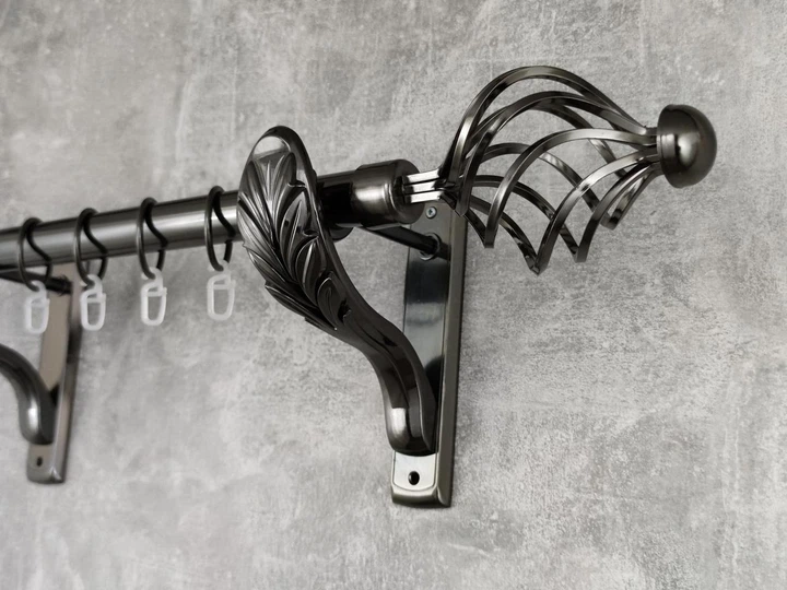 Карниз Quadrum Арабеска 200 см одинарний чорний матовий ретро 25 мм гладка (кільця з гачками)