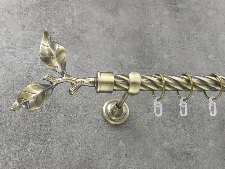 Карниз Quadrum Лист рози 320 см одинарний Антик 25 мм кручена (кільця з гачками)
