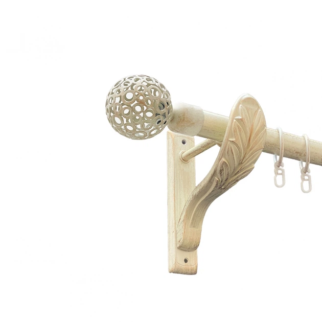 Карниз Orvit Листок Троянди металевий однорядний ретро гладка труба кільце металеве Біле Золото 25 мм 300 см (00-00010537)