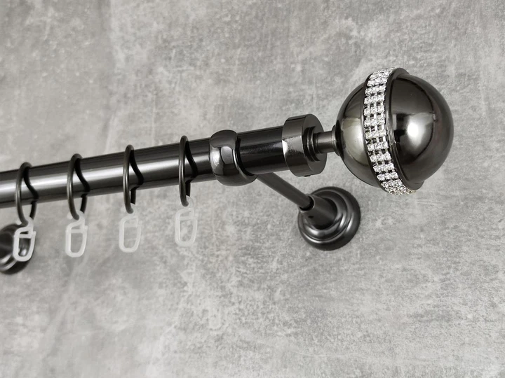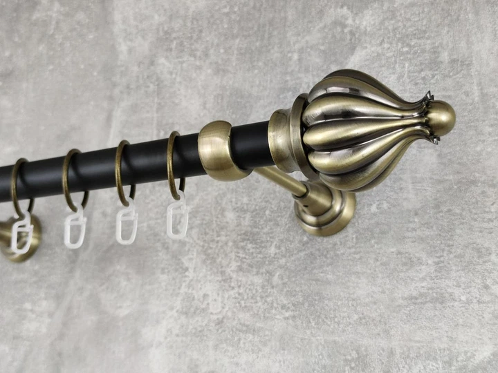 Карниз MStyle металевий для штор однорядний Люксор 25мм ретро гладкий 160см Онікс (A014335)