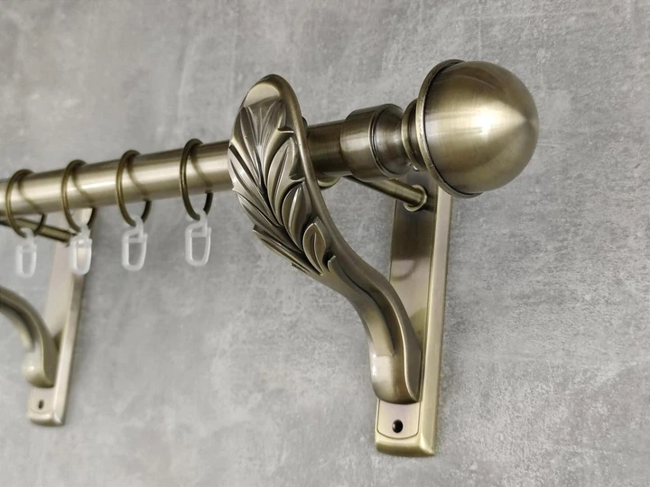 Карниз MStyle металевий для штор однорядний Бостон 25мм ретро гладкий 160см Антик (A010471)