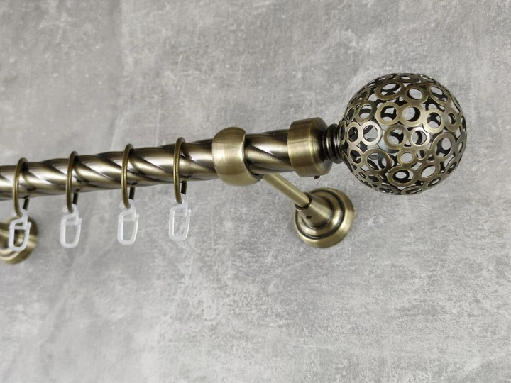 Карниз MStyle металевий для штор однорядний Савона 25мм кручений 240см Антик (A010578)