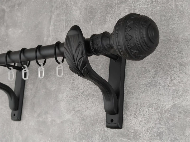 Карниз MStyle металевий для штор однорядний Арабеска 25мм ретро гладкий 160см Чорний (A013779)