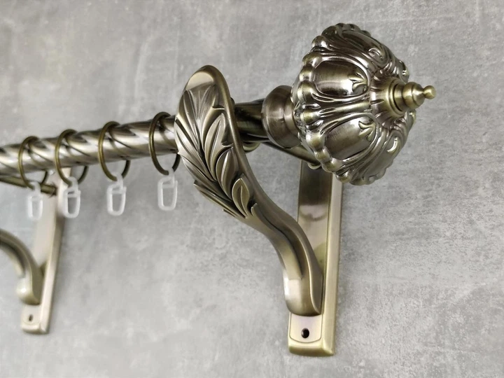 Карниз MStyle металевий для штор однорядний Шато 25мм ретро кручений 160см Антик (A011699)