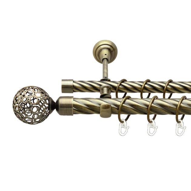 Карниз металевий Orvit Савона двохрядний 25/19 мм 160см антик кручена