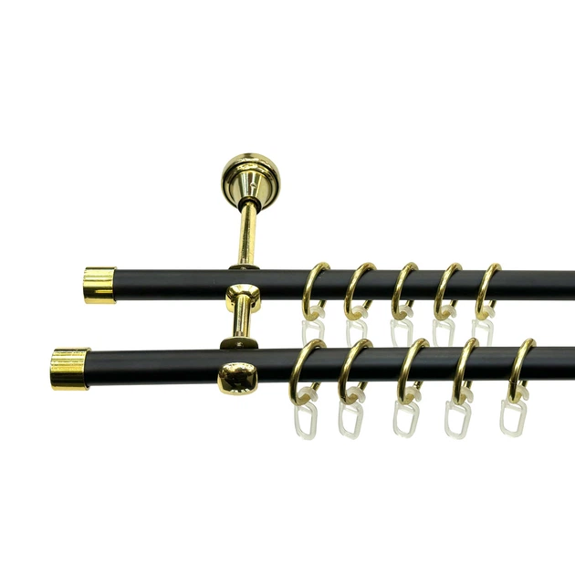 Карниз металевий Orvit Заглушка двохрядний 16/16 мм 240см чорний/золото