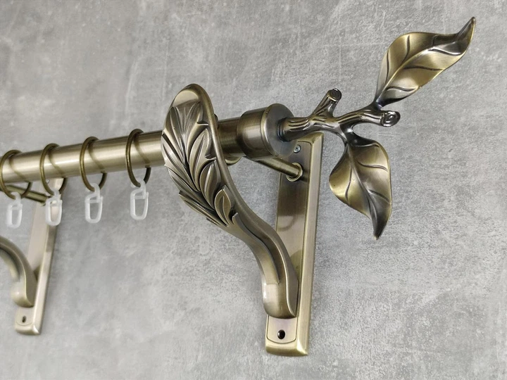 Карниз MStyle металевий для штор однорядний Листок Троянди 25мм ретро гладкий 200см Антик (A010476)