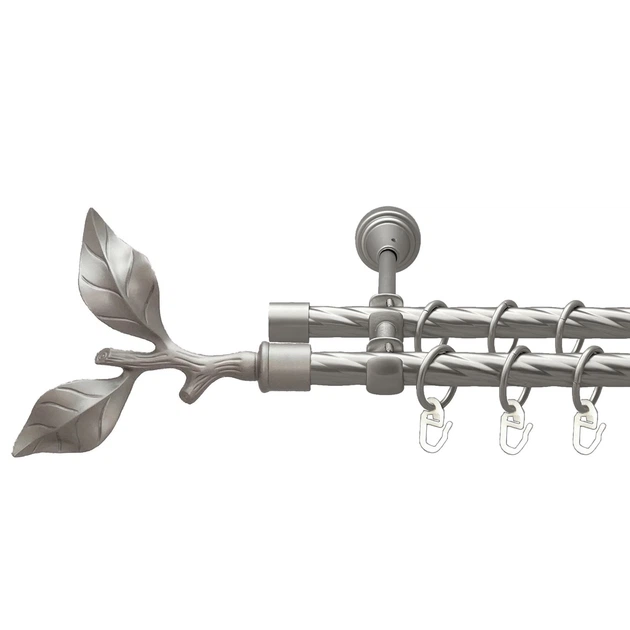 Карниз Orvit Листок Троянди металевий дворядний відкритий скручена труба кільце металеве Сатин 16\16 мм 160 см (00-00022857)