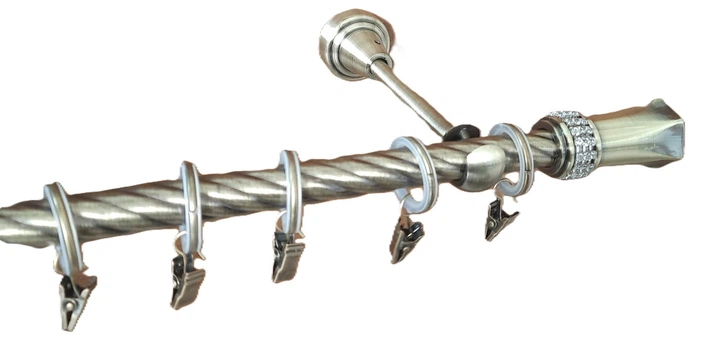 Карниз одинарний кручений Cardinal ПЛУТОН З КРИСТАЛОМ з жабкою 19 мм 240 см антик