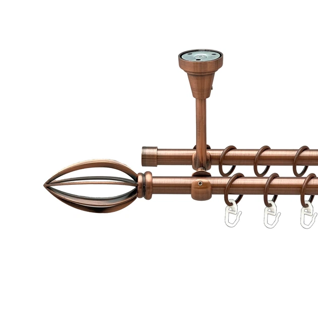 Карниз Orvit Пантеон металевий дворядний відкритий до стелі гладка труба кільце металеве Мідь 16\16 мм 160 см (00-00020184)