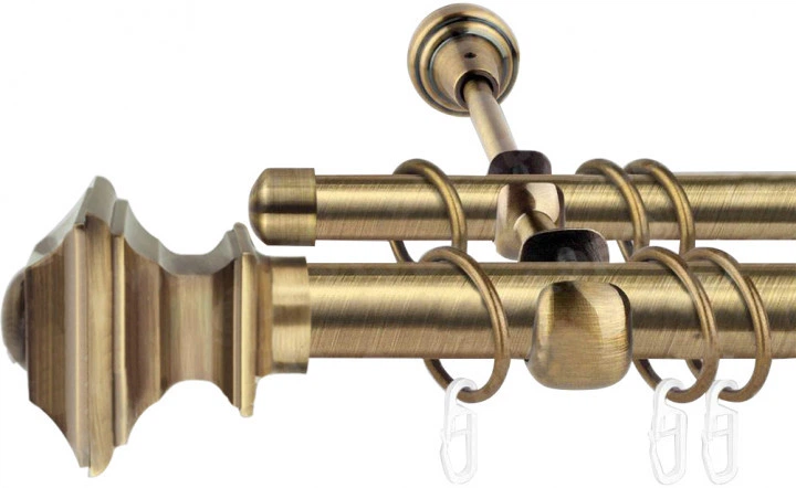 Карниз Quadrum Люксор 200 см подвійний Антик ретро 25/19 мм гладка (кільця з гачками)
