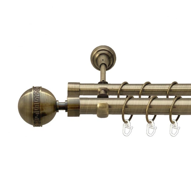 Карниз двійний Cardinal СЕВІЛІЯ+КУЛЯ БОЛОНЬ з жабкою 19/19 мм 300 см антик