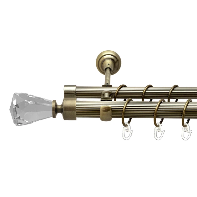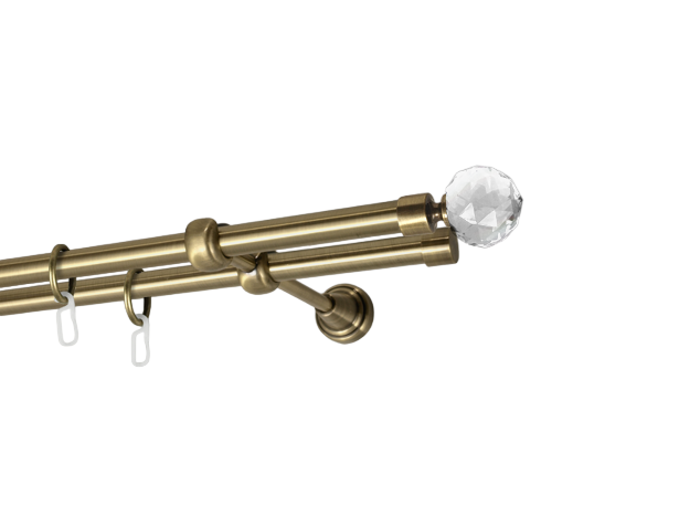Карниз Quadrum Шишка 160 см подвійний Антик ретро 25/19 мм гладка (кільця з гачками)