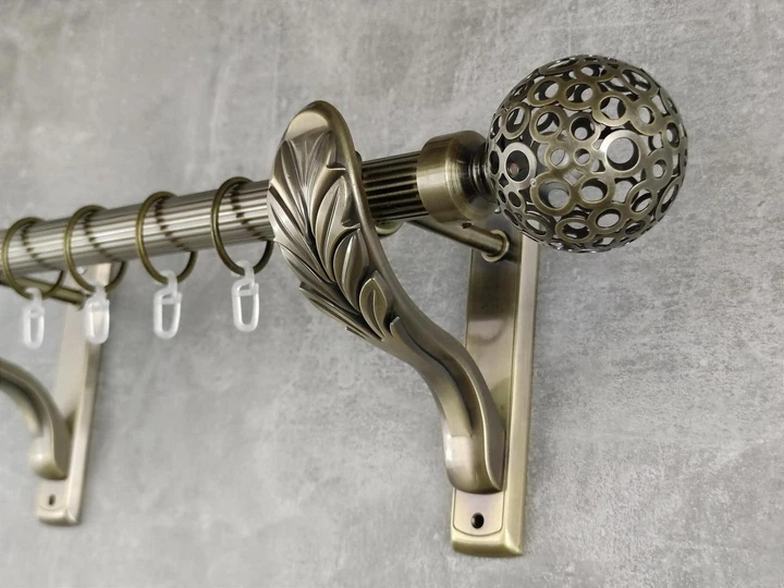 Карниз MStyle металевий для штор однорядний Дуо 25мм ретро кручений 300см Антик (A011337)