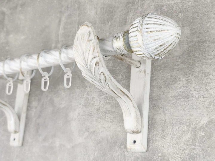 Карниз MStyle металевий для штор однорядний Одеон 25мм ретро кручений 240см Біле золото (A012522)