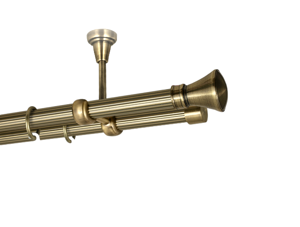 Карниз Orvit металевий дворядний Люксор труба рифлена 19/19мм кронштейн стельовий 240см Антик (K010728)