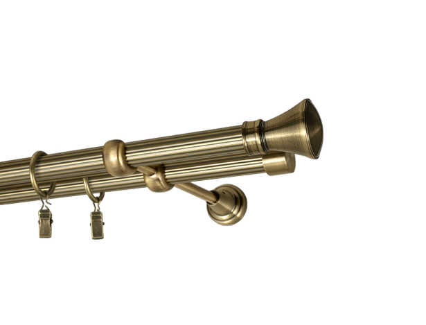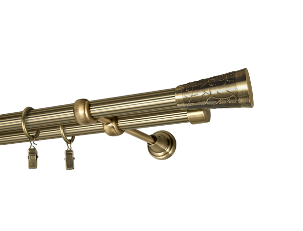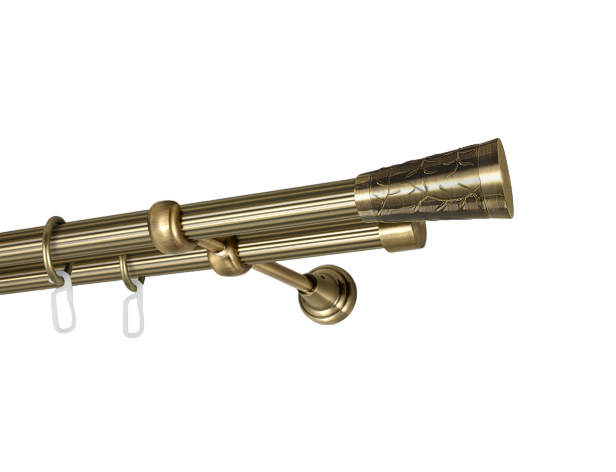 Карниз подвійний кручений Cardinal КУЛЯ АЖУР+РУЛЛО з жабкою 19/19 мм 300 см антик