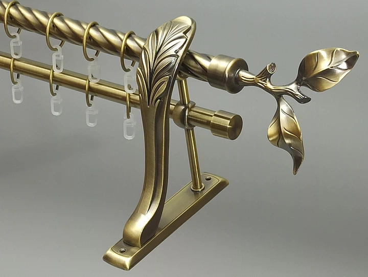 Карниз MStyle металевий для штор дворядний Листок Троянди 25/19мм ретро гладкий 160см Антик (A010283)
