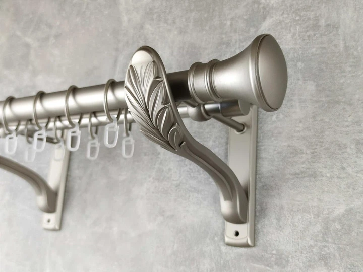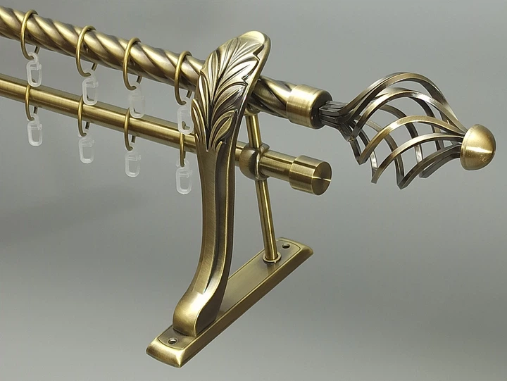 Карниз MStyle металевий для штор дворядний Листок Троянди 25/19мм ретро гладкий 160см Антик (A010283)