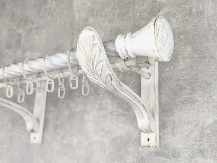 Карниз MStyle металевий для штор дворядний Листок Троянди 25/19мм ретро кручений 160см Біле золото (A012480)