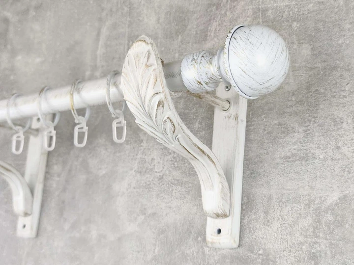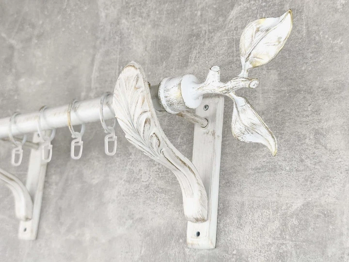 Карниз MStyle металевий для штор однорядний Листок Троянди 25мм ретро гладкий 300см Біле золото (A010984)
