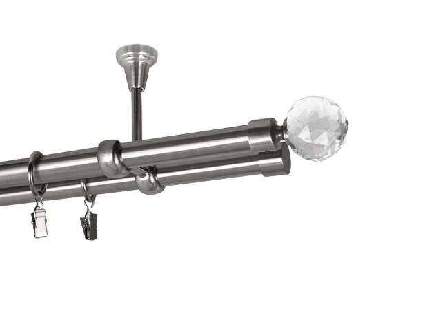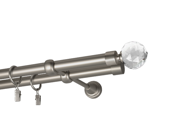 Карниз Orvit Таджа-Кристал металевий дворядний відкритий до стелі скручена труба кільце металеве Сатин 25\19 мм 300 см (00-0