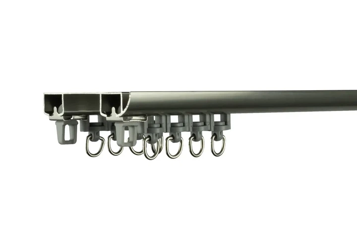 Карниз Decolux стельовий алюмінієвий посилений дворядний DS-2 Сталевий на роликових бігунках 200см