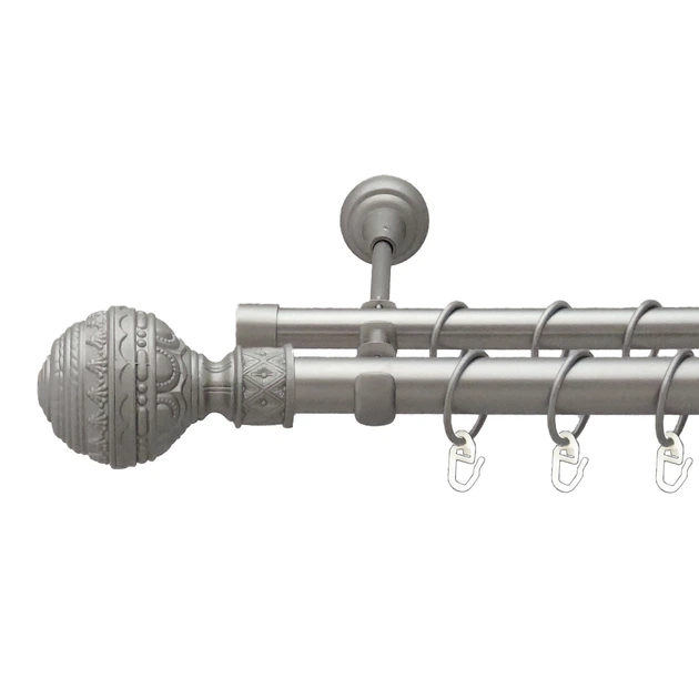Карниз Orvit Арабеска металевий дворядний відкритий гладка труба кільце металеве Сатин 25\19 мм 300 см (00-00011058)