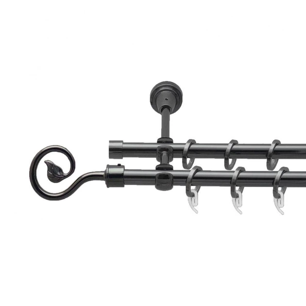 Карниз Orvit Борджеза металевий дворядний опозитний гладка \ профільна труба кільце металеве Чорний Оксамит 25\19 мм 300 см