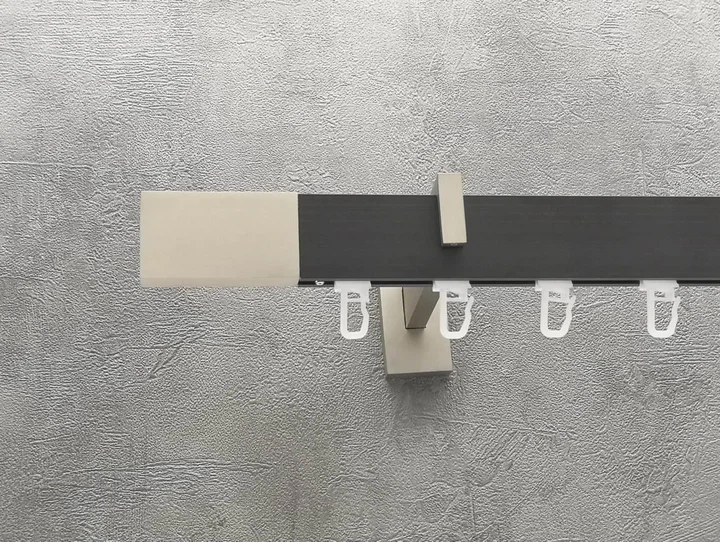 Карниз Quadrum Дункан 240 см одинарний модерн Сатин/чорний матовий 25 мм гладка (кільця з гачками)