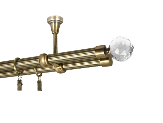 Карниз Quadrum Шишка 240 см подвійний Антик 25/19 мм гладка (кільця з гачками)