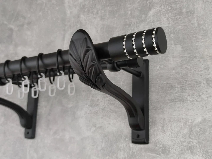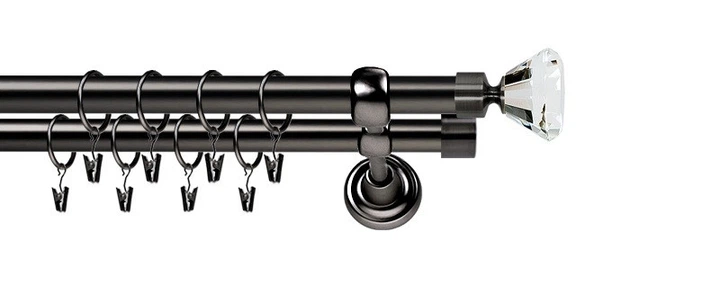 Карниз Quadrum Шишка 160 см подвійний модерн Сатин/чорний матовий 25/19 мм гладка (кільця з гачками)