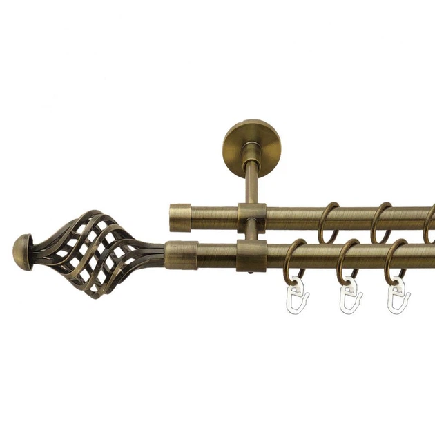 Карниз металевий Orvit Листок троянди двохрядний 19/19мм 160см антик кручена