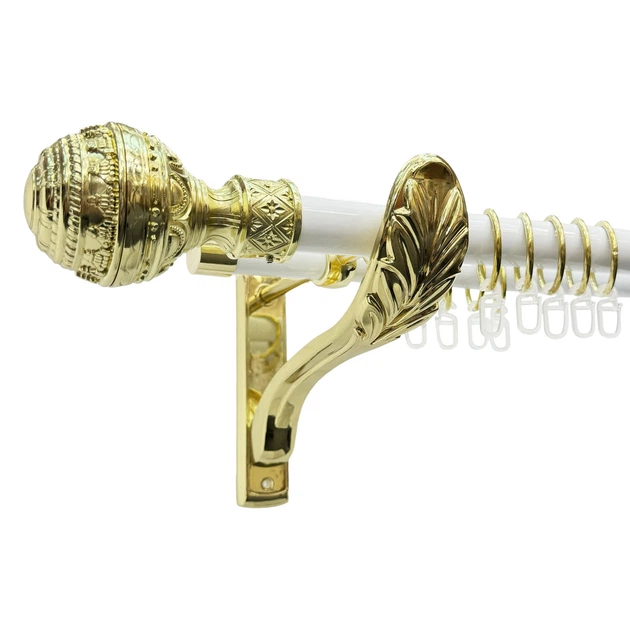 Карниз для штор Orvit Люксор металевий дворядний Ретро гладка труба кільце метал Біле золото 25\19 мм 200 см