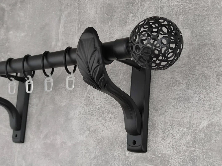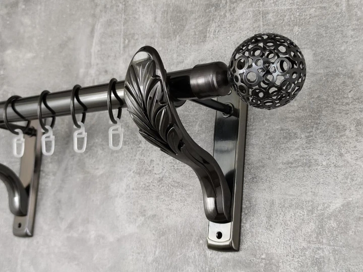 Карниз MStyle металевий для штор однорядний Листок Троянди 25мм ретро гладкий 400см Чорний (A013818)