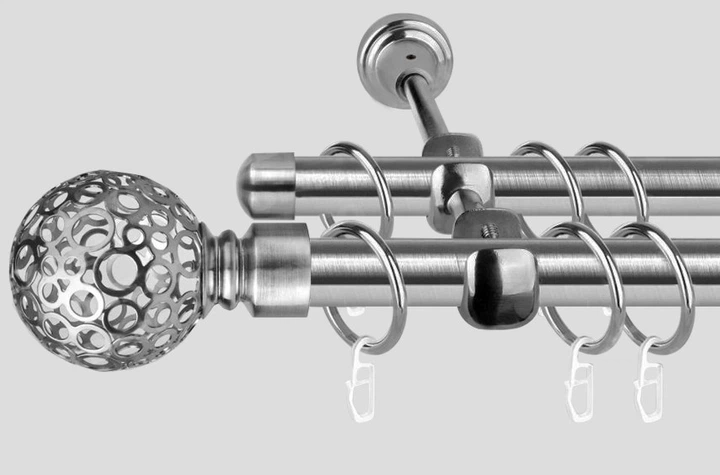 Карниз Orvit Карера металевий дворядний відкритий до стелі скручена труба кільце металеве Сатин 25\19 мм 200 см (00-00024211