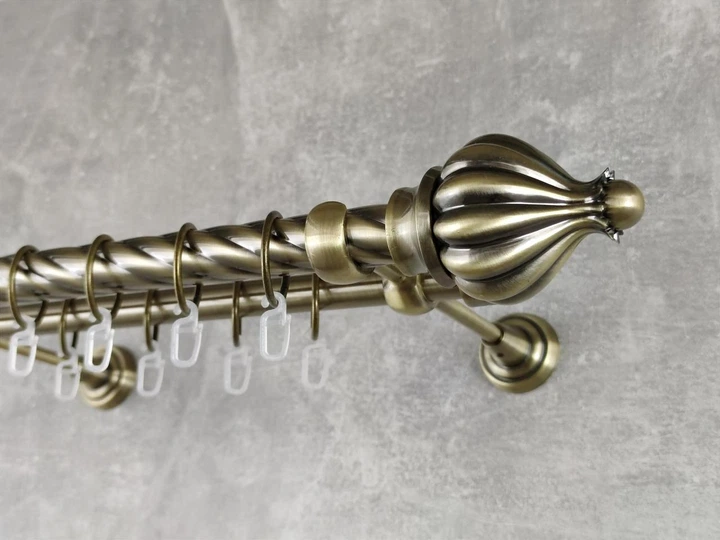 Карниз MStyle металевий для штор дворядний Таджа 25/19мм кручений 240см Антик (A010305)