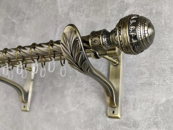 Карниз MStyle металевий для штор дворядний Арабеска 25/19мм ретро кручений 200см Антик (A010023)