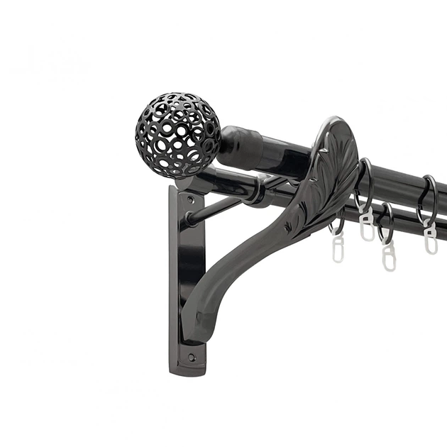 Карниз Orvit Савона металевий дворядний ретро гладка труба кільце металеве Онікс 25\19 мм 240 см (00-00021517)