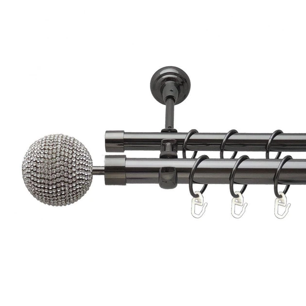 Карниз Orvit Люміера металевий дворядний опозитний гладка \ профільна труба кільце металеве Чорний Оксамит 25\19 мм 300 см (