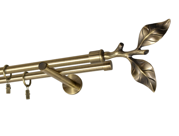 Карниз Orvit металевий дворядний Листок Троянди 16/16мм кронштейн циліндр 300см Антик (G010204)