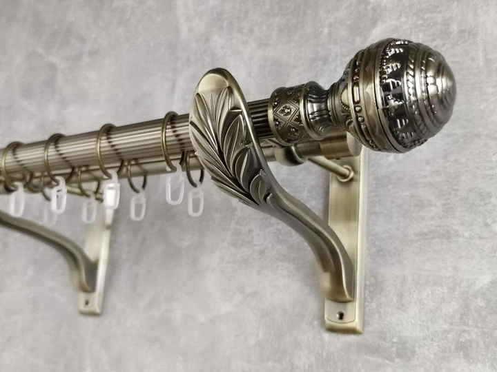 Карниз MStyle металевий для штор дворядний Шато 25/19мм ретро рифлений 160см Антик (A011764)