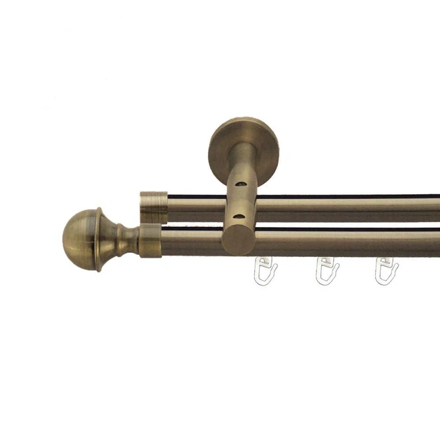 Карниз Quadrum Шишка 300 см подвійний Антик 25/19 мм рифлена (кільця з гачками)